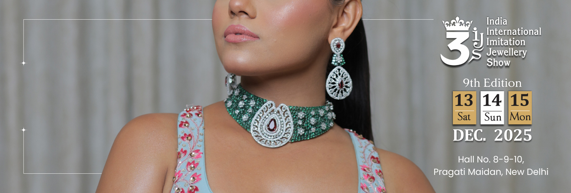 The 3ijs India International Imitation Jewellery Show is an upcoming jewelry show organized by A9 Media. It will be held in Hall No. 8-9-10 at Pragati Maidan in Delhi from December 13-14-15, 2025